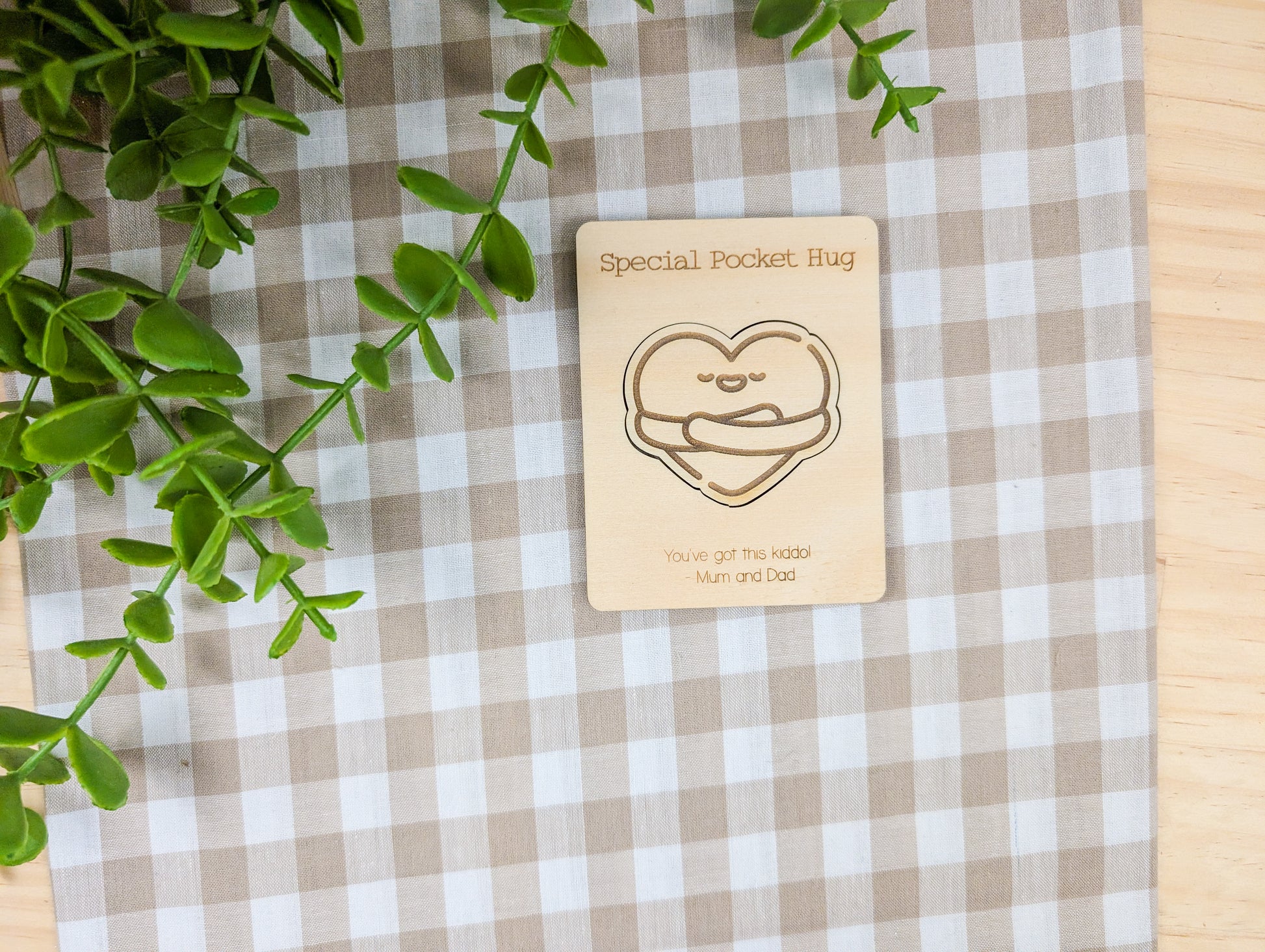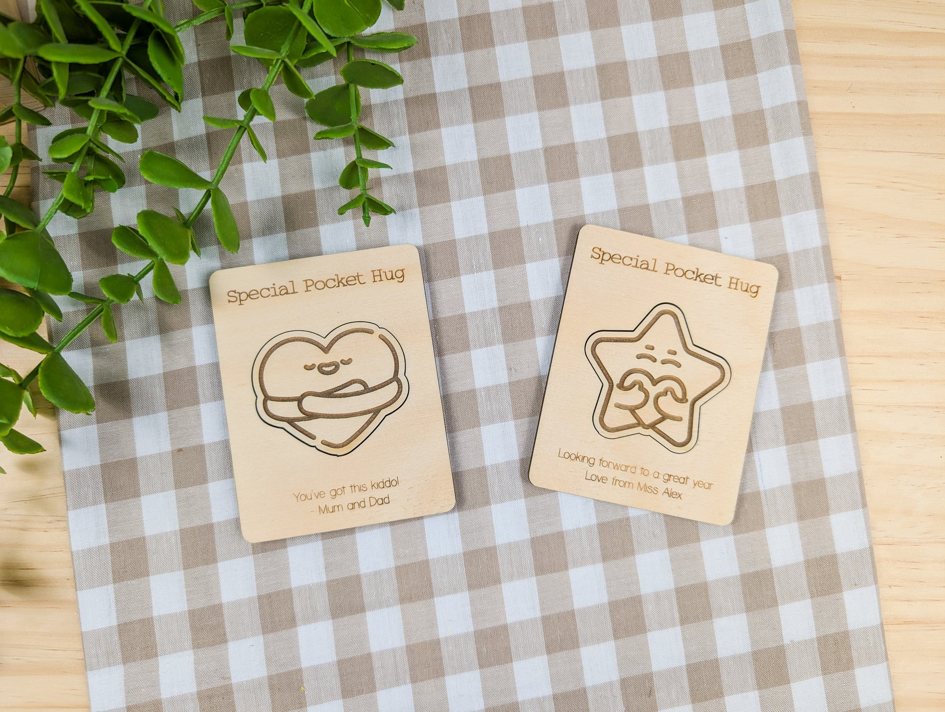 Our personalised pocket hugs are sure to brighten your kids day when those big feelings hit. These pocket hugs sit in their pocket, ready for a good squeeze whenever they need to be reminded that they are loved.
